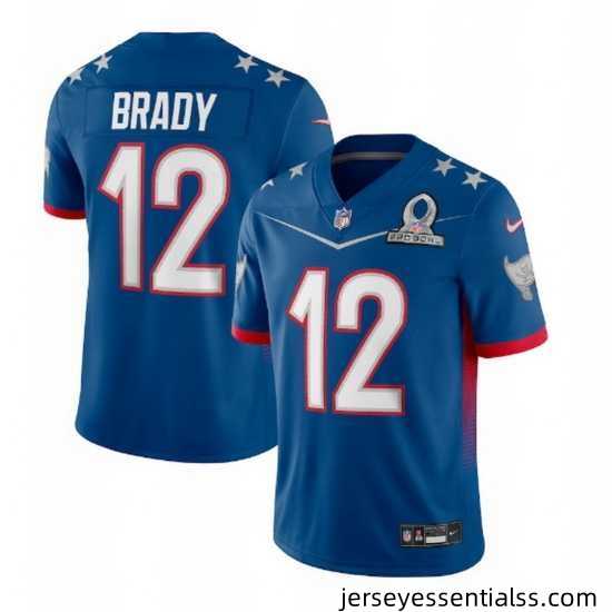 Feast your eyes on the wonder of Alluring 2022 NFL Pro Bowl Tampa Bay Buccaneers #12 Tom Brady NFC Blue Jersey engineered to keep you in style through every thrilling play. Boasting F.U.S.E Stitched collectibles, Super Bowl – related gear, NFL merchandise, it is an absolute must – have for die – hard fans!