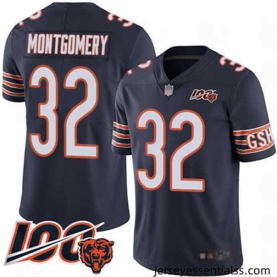 Chicago Bears 32 David Montgomery Navy Blue Team Color 100th Season Limited Football Jersey