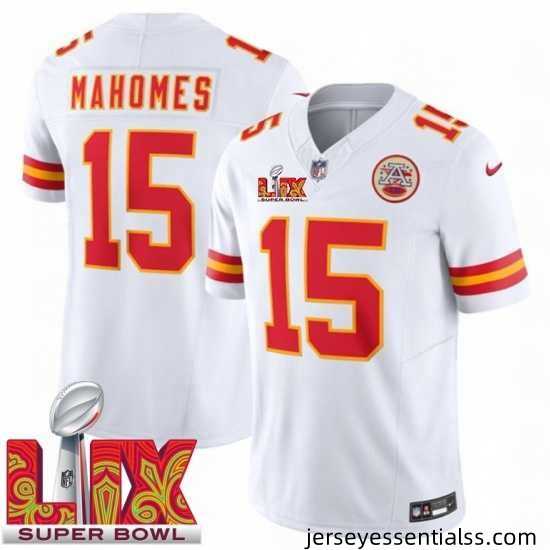 Kansas City Chiefs Patrick Mahomes #15 White 2024 2025 Super Bowl LIX F.U.S.E Stitched Jersey