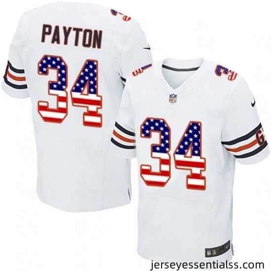 Breathtaking Mens Nike Chicago Bears 34 Walter Payton Elite White Road USA Flag Fashion NFL Jersey engineered to keep you in style through every thrilling play