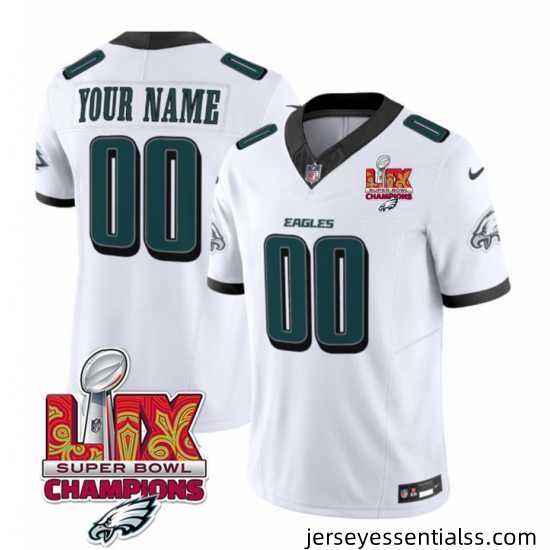 Dazzling Philadelphia Eagles Active Player Custom White 2025 Eagles Logo Super Bowl LIX Patch New F.U.S.E Vapor Limited Stitched Football Jersey tailored to let your team pride shine brighter than ever before